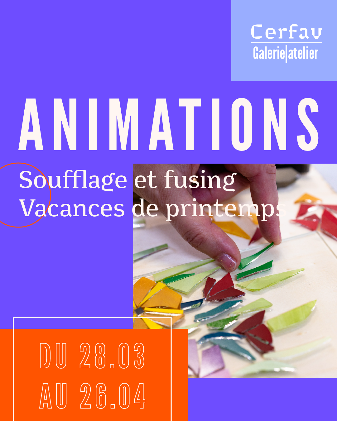 Toute l’année, la Galerie|Atelier du Cerfav vous propose de créer vos propres pièces en verre en participant à différentes animations.