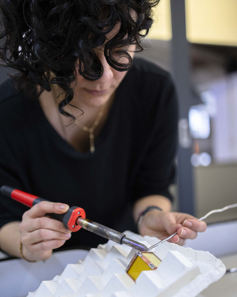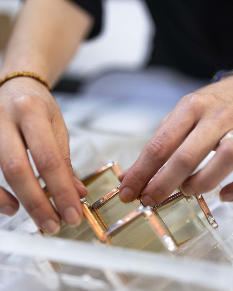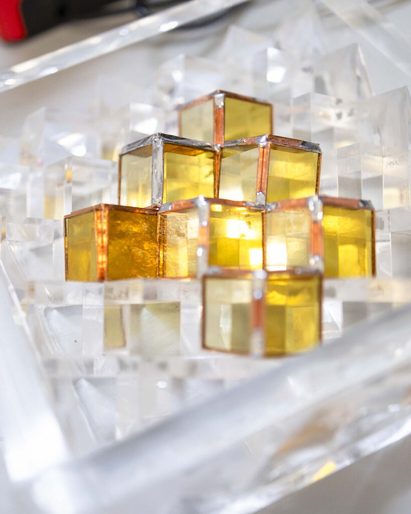 « On peut profiter jusqu’aux derniers morceaux du verre. Avec cette technique, même les chutes deviennent une ressource — on peut faire comme des sortes de mosaïques, mais en volume. »