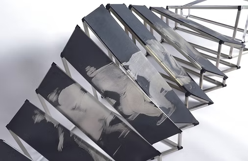 Avec ces 11 modules évoquant le mouvement, Maria s’inspire de l’art optico-cinétique.