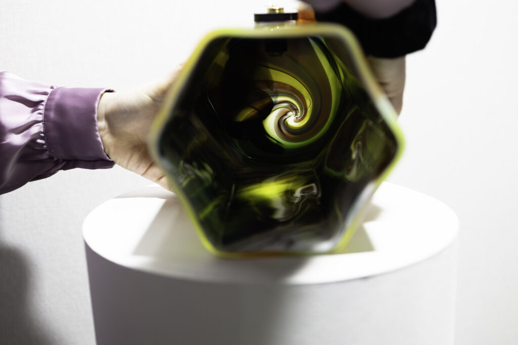 Je n’avais encore jamais exposé dans une foire d’art contemporain, et je suis agréablement surprise. Beaucoup de personnes qui passent sont interpellés par notre stand. Elles  vont facilement vers nous parce que le verre intrigue.