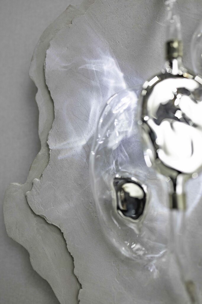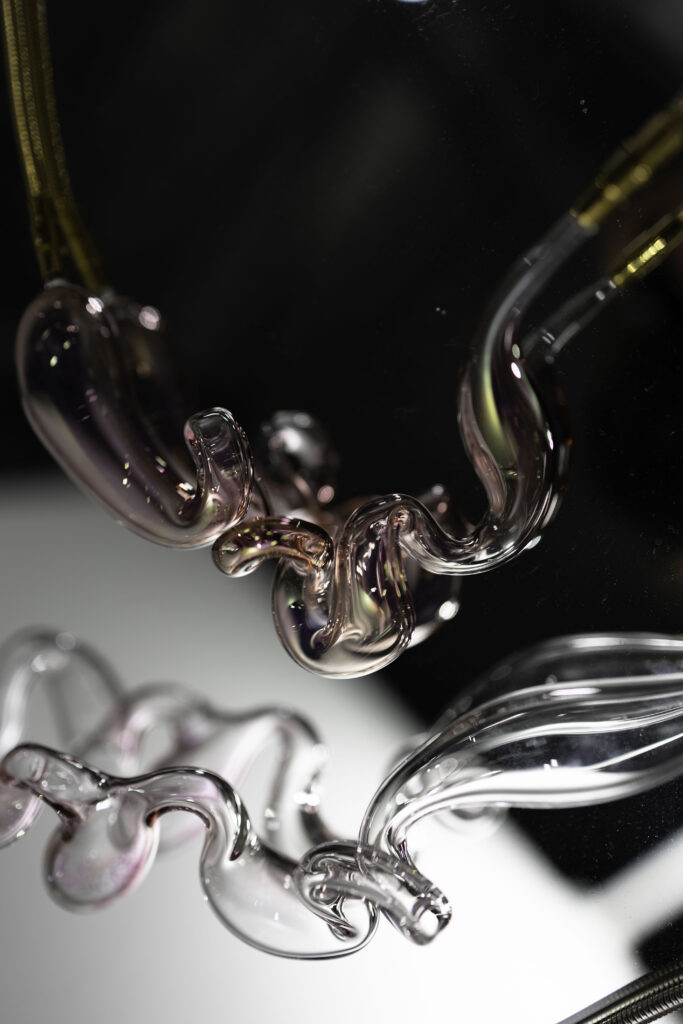 Manon Fontaine a installé son atelier à Bliiida, à Metz. Elle poursuit son activité de créations autour du bijou contemporain et des installations sur la thématique du corps – travaillant le verre borosilicate.