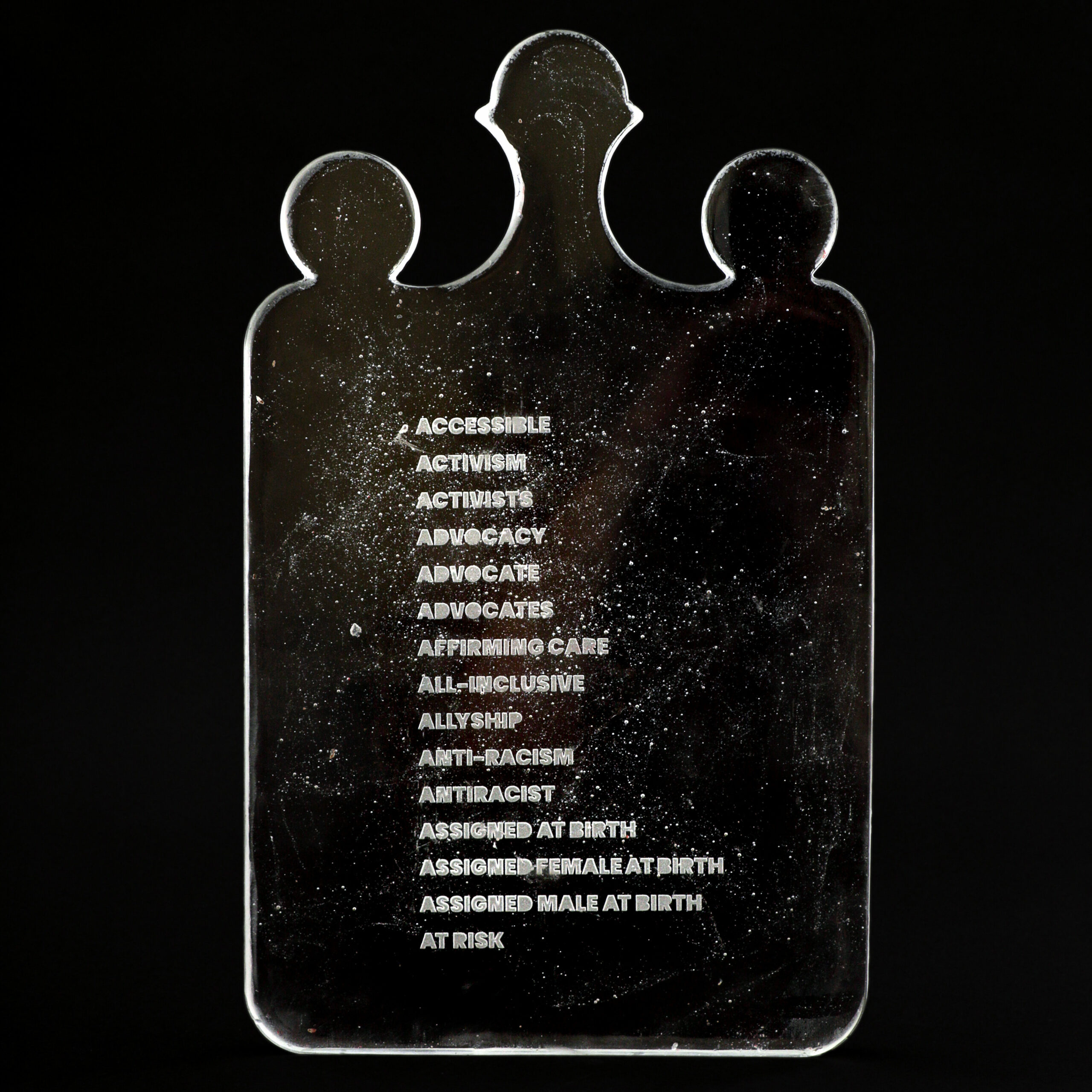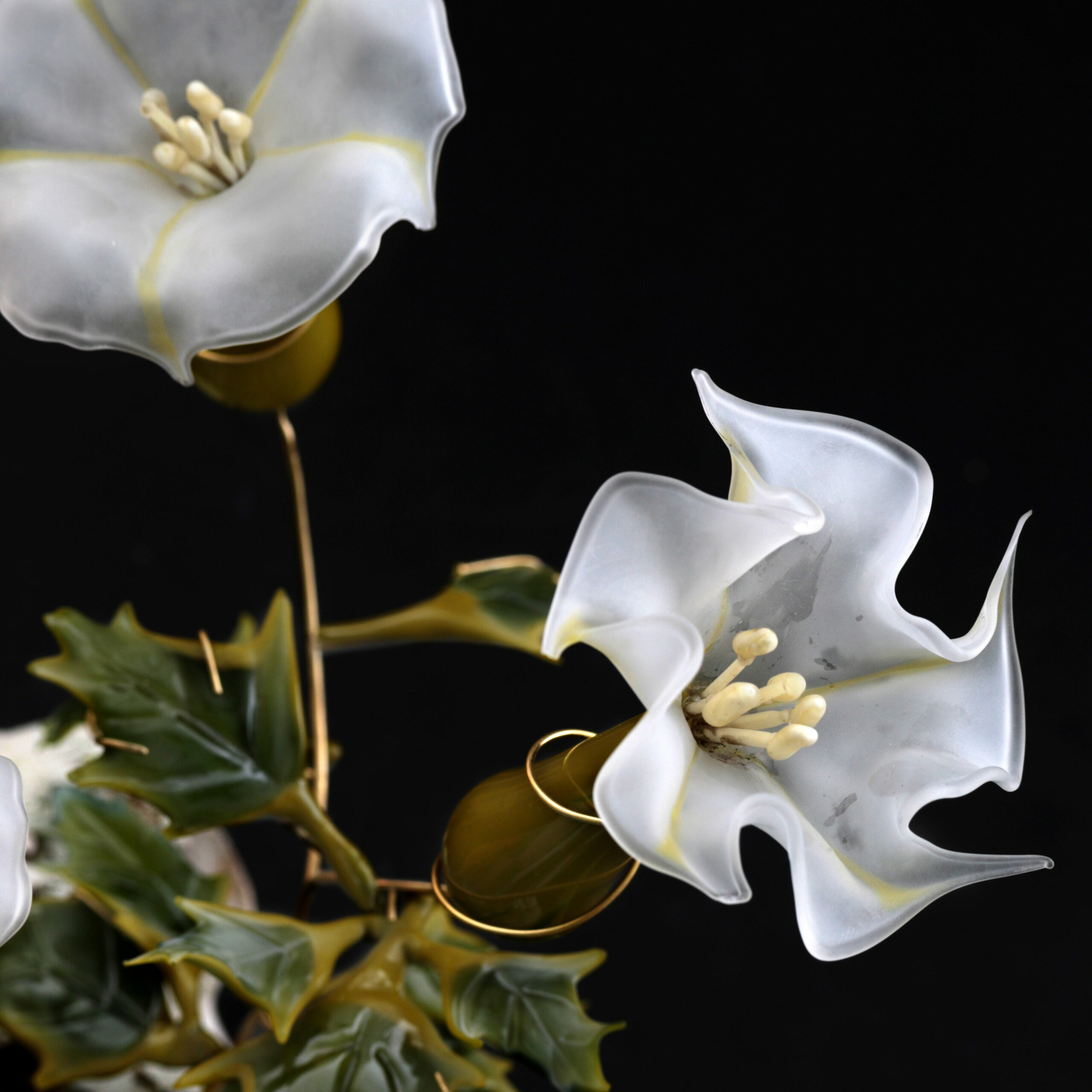 Œuvres présentées : Mémoire de la matière (sculpture en pâte de verre/bois), Glass Vibration 1, 2 et 3 (instruments en pâte de verre/bois)