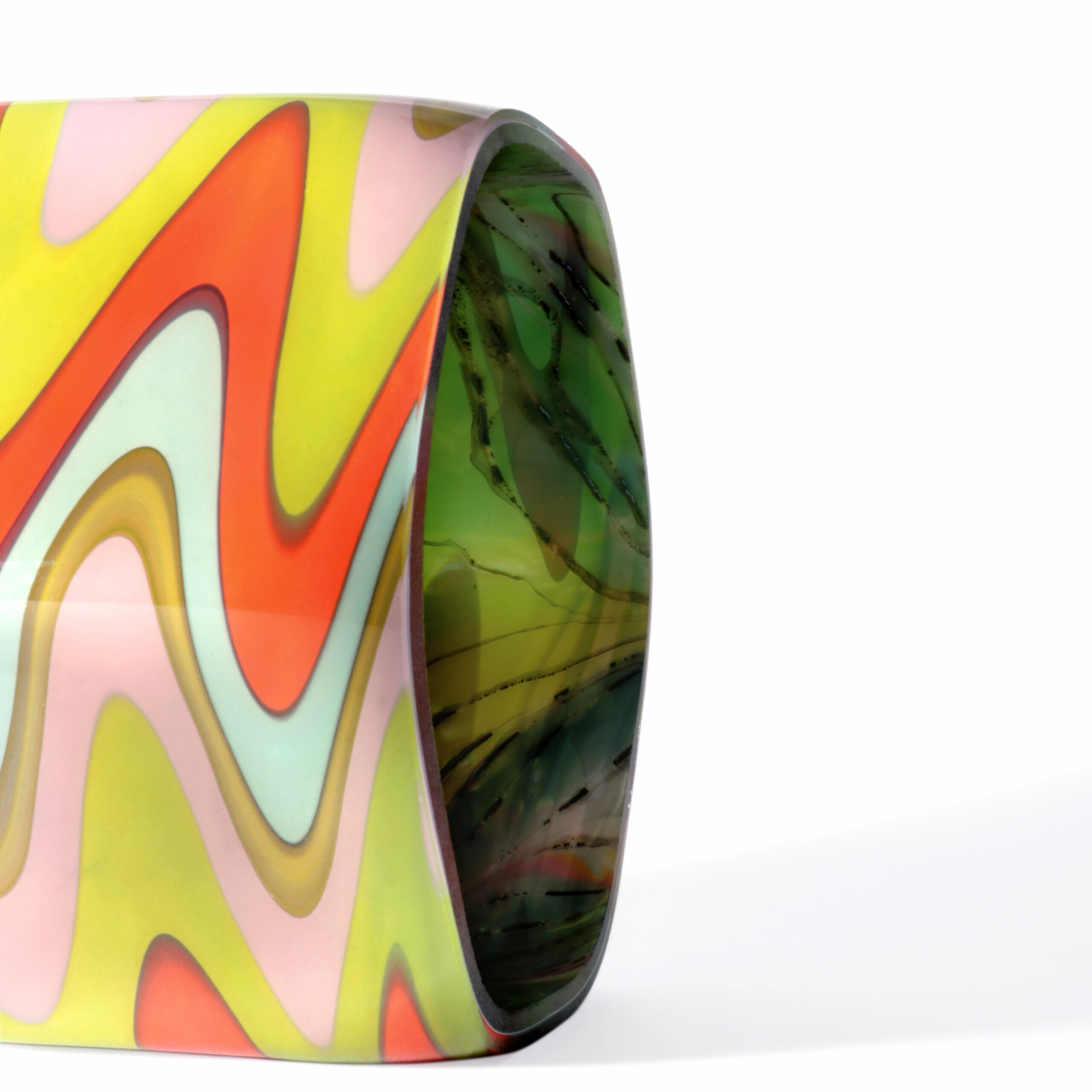 Justine Ressot est une artiste verrière à l’écoute de ses émotions. La sensorialité vive du soufflage à la canne la conduit à créer des pièces uniques. Les valeurs de partage et d’entraide – essentielles pour la pratique du soufflage – sont centrales dans ses créations aux couleurs bariolées, qui sont devenues sa marque de fabrique. Ses sculptures révèlent aussi la profondeur des émotions.