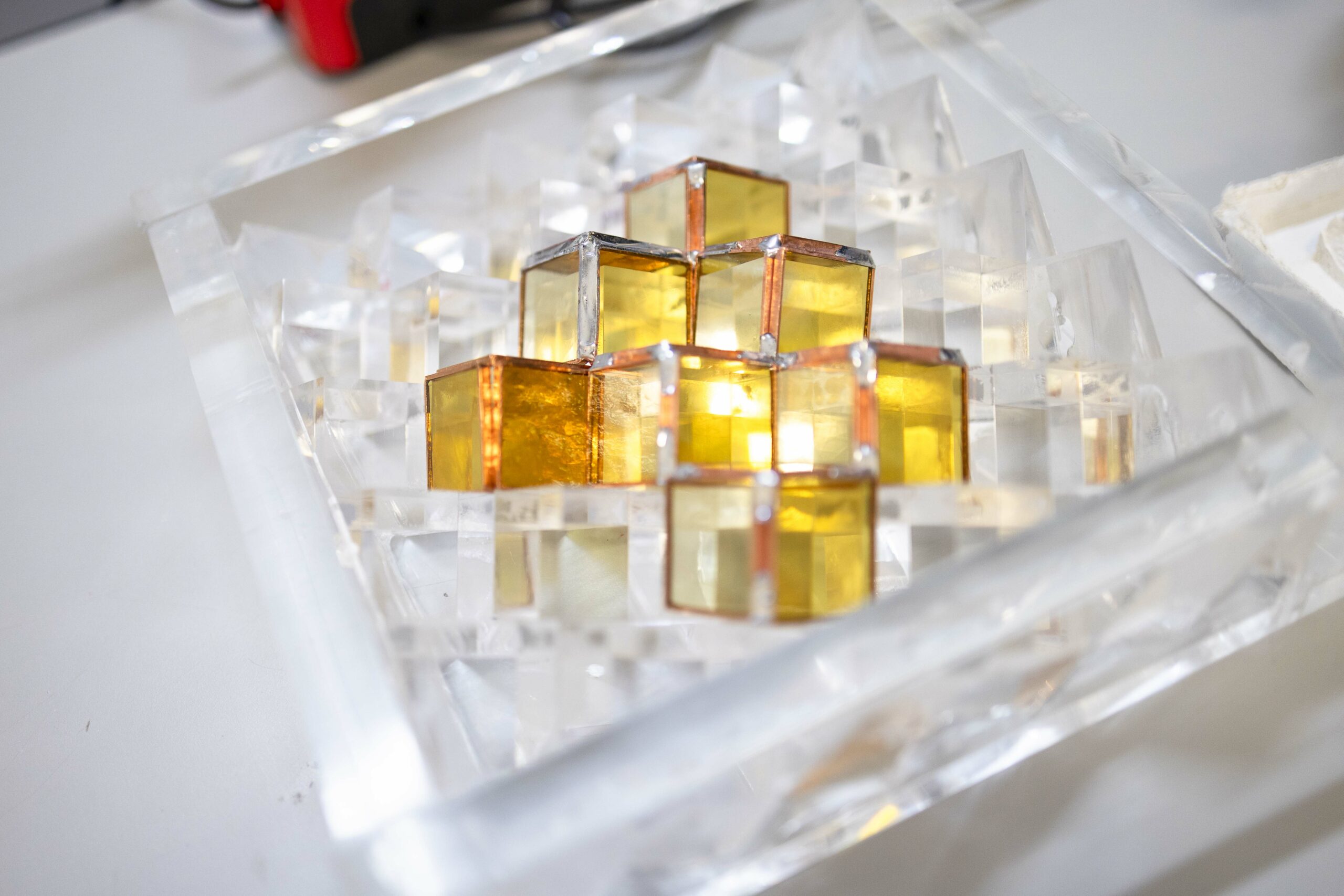 Avec le vitrail Tiffany en suspension, vous apprendrez à travailler le vitrail en volume pour créer une décoration aux formes géométriques.