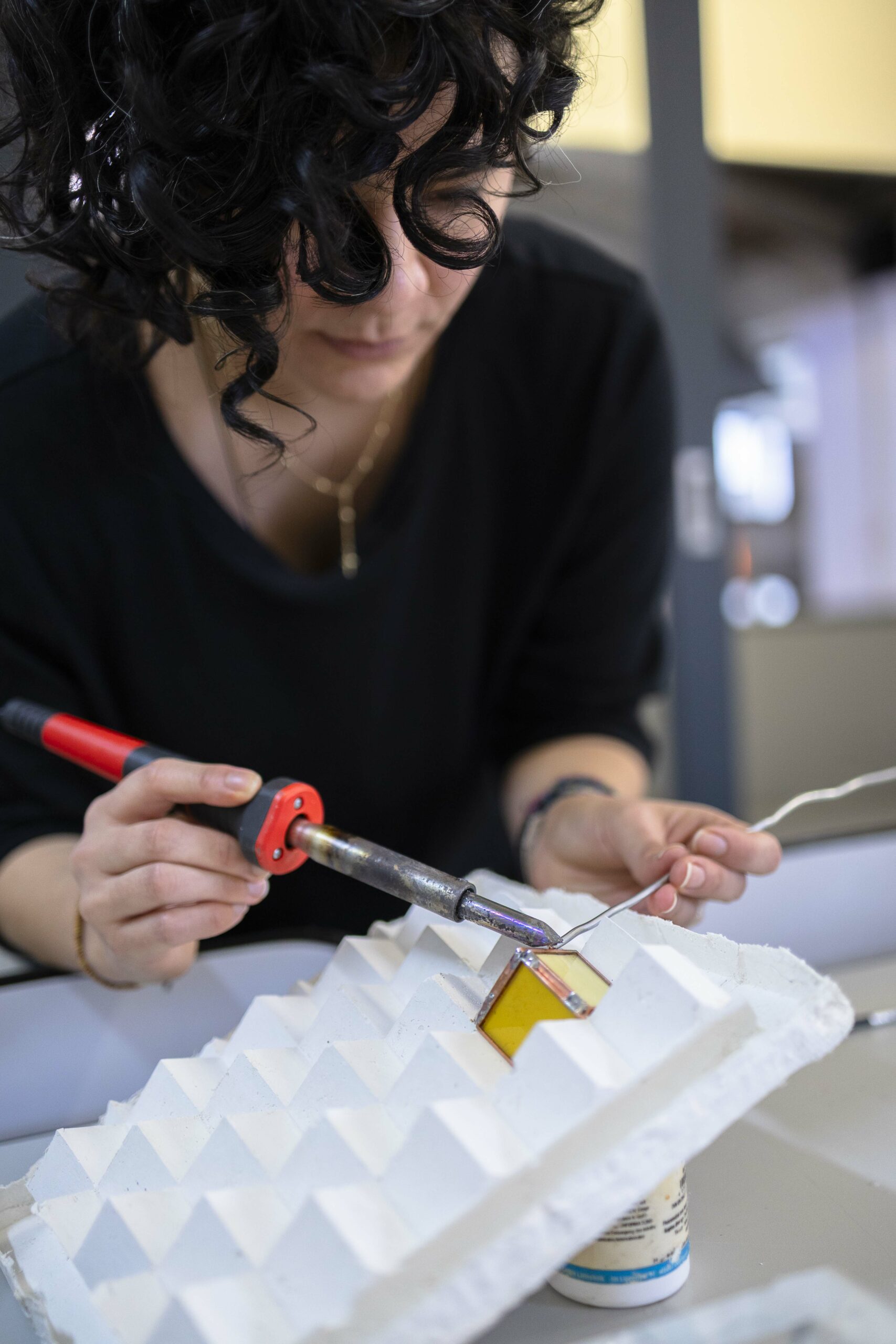Élaborer une composition géométrique en relief à l’aide d’un support spécialement conçu à cet effet.