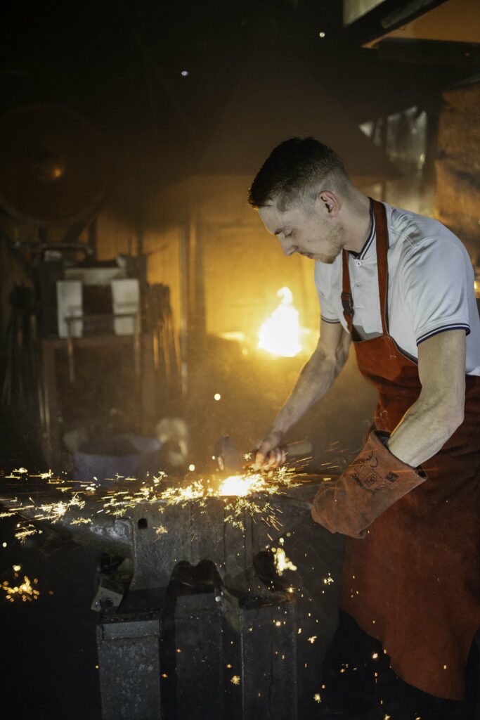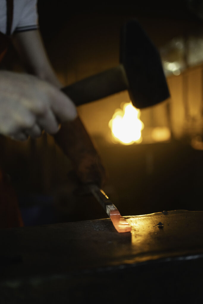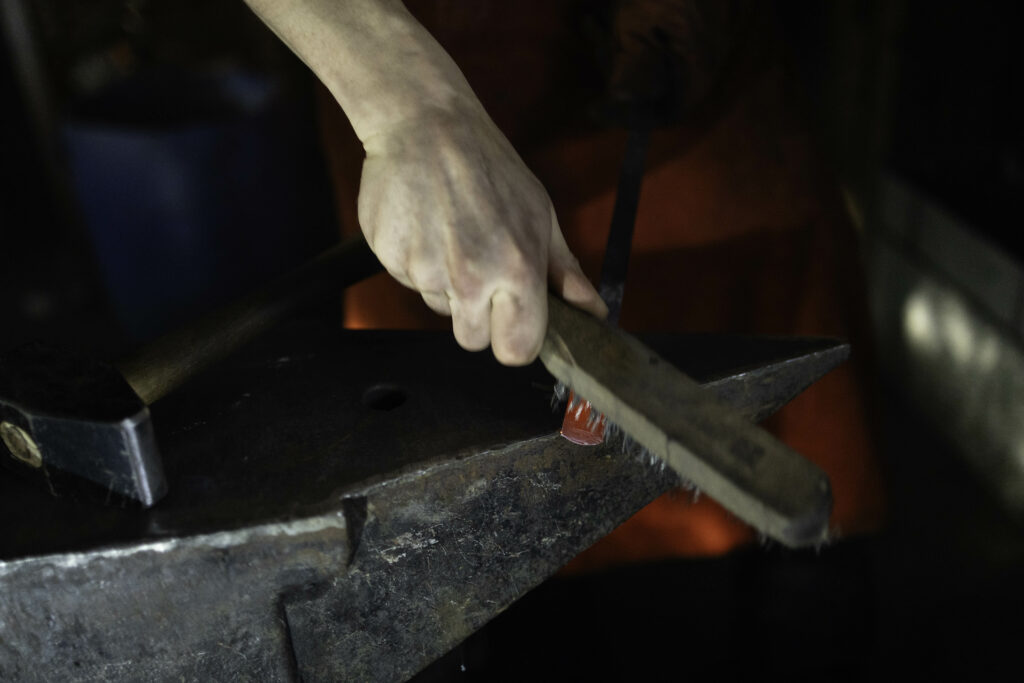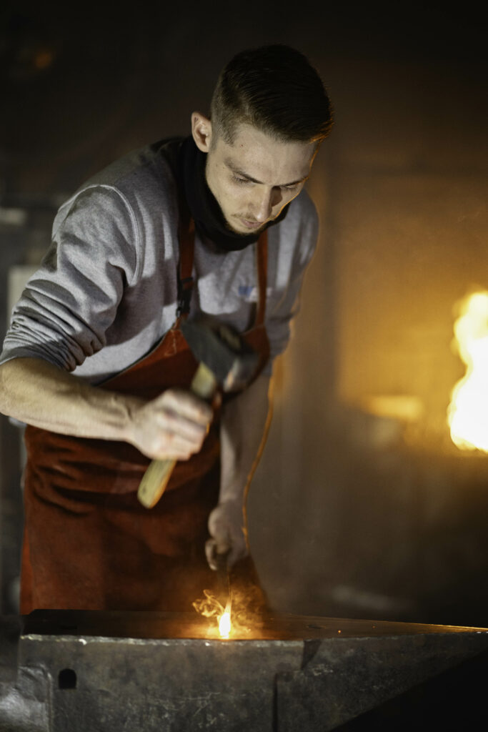 J’ai commencé ma formation en CAP métallier serrurier aux Compagnons du Devoir quand j’avais 15 ans. J’ai fait plein de petits boulots, de déménageur à commercial, et à un moment donné j’en ai eu marre. J’ai rencontré Sylvain Naudin qui m’a conseillé de suivre une formation au lycée Boutet de Monvel à Lunéville, avec la possibilité ensuite d’intégrer le Cerfav pour la formation « concepteur créateur en métier d’art. J’ai obtenu mon CAP de ferronnier d’art, et me voilà aujourd’hui à Vannes-le-Châtel.