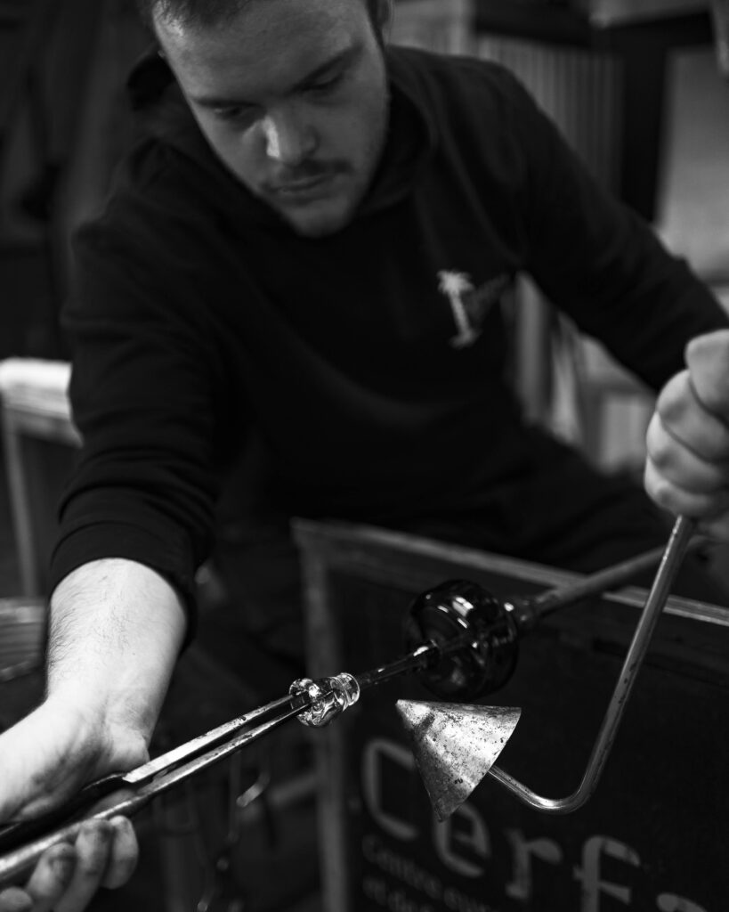 Ce qui m’a motivé à choisir ce métier c’est un peu tout ça, la curiosité sans cesse entretenue par la myriade de possibilité offerte par le verre. C’est ce rapport à l’autre, à l’entraide nécessaire à la réalisation d’objets en verre. C’est ce lâcher prise total qui apparait lorsque je vois le verre au bout d’une canne.